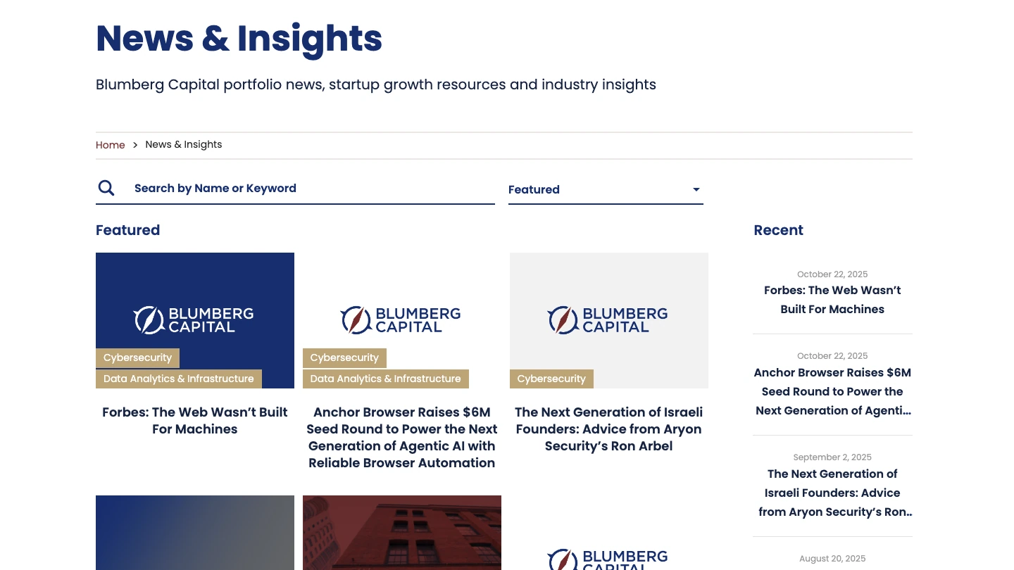 Built on WordPress with Beaver Builder, the new BlumbergCapital.com delivers flexibility and scalability. The modular page system allows internal teams to easily add new portfolio companies, press features, or thought leadership content without custom coding.
