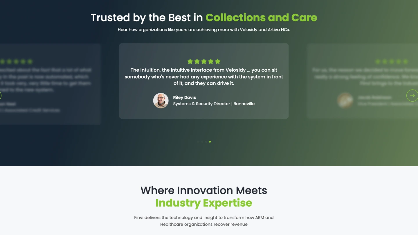 Finvi needed a modernized digital presence aligned with its role as an industry innovator. The previous site lacked: